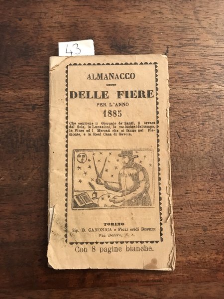 Almanacco detto delle fiere per l'anno 1885 che contiene il Giornale de' Santi, il levare del sole, le lunazioni, le fiere, ed i mercati che si fanno nel Piemonte, e la Real casa di Savoia.