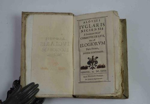 Aloysii ivglaris niciensis e societate iesu Christus Iesus, hoc est elogiorum Pars prima, divina continens. (-Pars secunda. Humana continens. Genethliaca, funebria, eucharistica panegirica, dedicationes, inscriptiones).