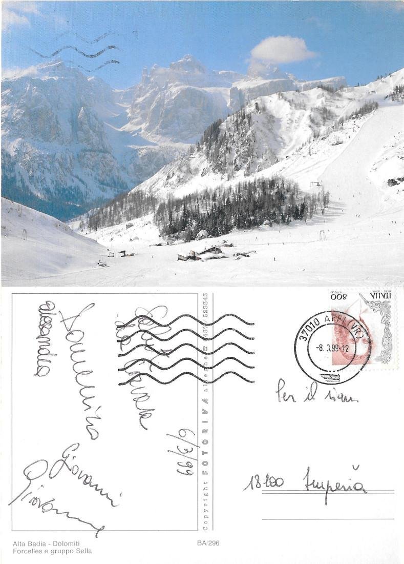 Alta Badia. Forcelles e gruppo Sella. Viaggiata 1999