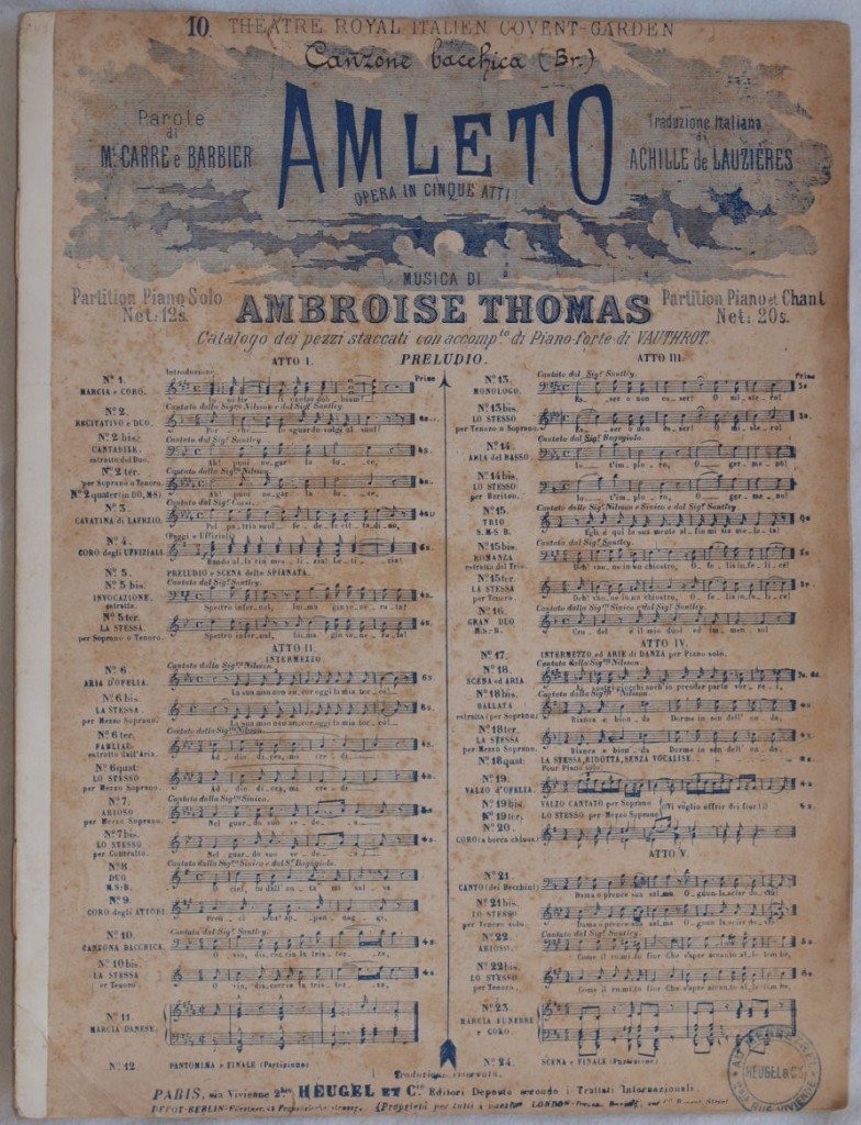 AMLETO OPERA IN CINQUE ATTI MUSICA DI AMBROISE THOMAS PAROLE DI MCARRE E BARBIER TRADUZIONE ITALIANA DI ACHILLE DE LAUZIERES