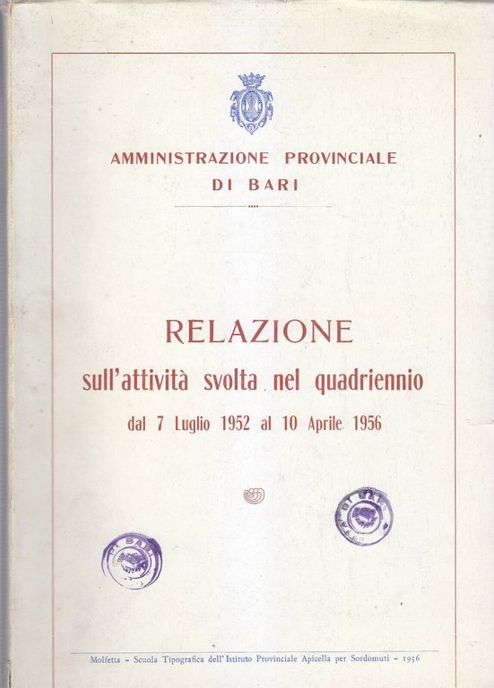 amministrazione di Bari RELAZIONE SULL'ATTIVITÀ SVOLTA NEL QUADRIENNIO 1952 1956