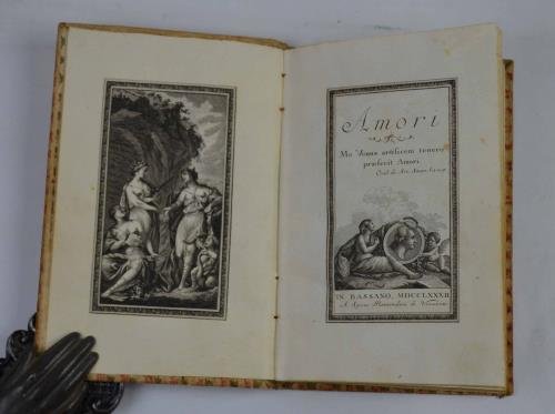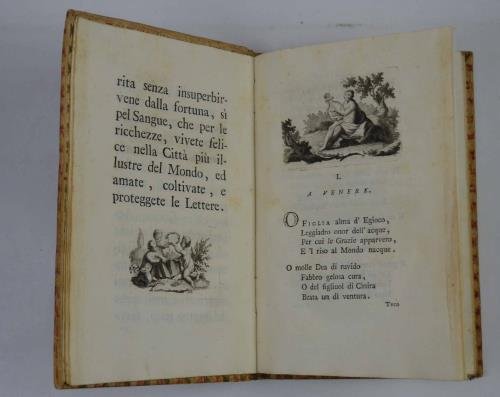 Cm. 18,5, pp. cl. Antiporta allegorica, vignetta al frontespizio, capolettera e grande testate, il tutto finemente inciso in rame. Graziosa legatura coeva in cartoncino rigido ricoperto in carta dipinta. Bel volume. Esemplare fresco e ben conservato.