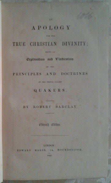 AN APOLOGY FOR THE TRUE CHRISTIAN DIVINITY. BEING AN EXPLANATION AND VINDICATION OF THE PRINCIPLES AND DOCTRINES OF THE PEOPLE CALLED QUAKERS.