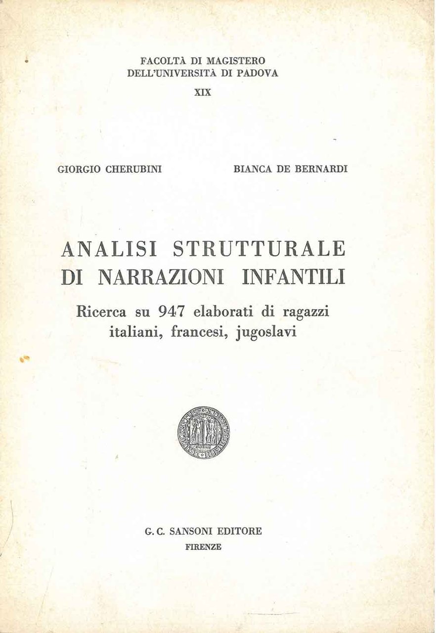 Analisi strutturale di narrazioni infantili. Ricerca su 947 elaborati di ragazzi italiani, francesi, jugoslavi