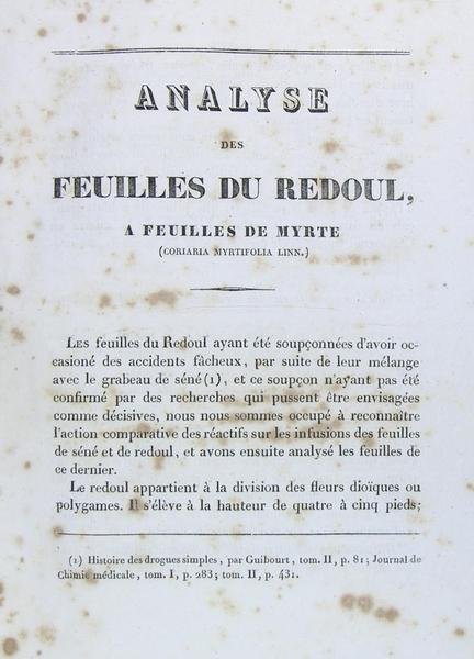 Analyse des feuilles du Redoul, à feuilles de Myrte (Coriaria Myrtifolia Linn.)