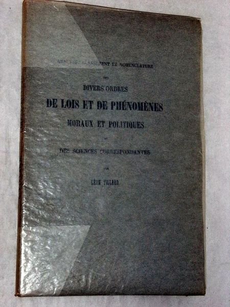 Analyse et Classement des divers ordres de Lois et de Phénomènes moraux et politiques et des Sciences correspondantes.