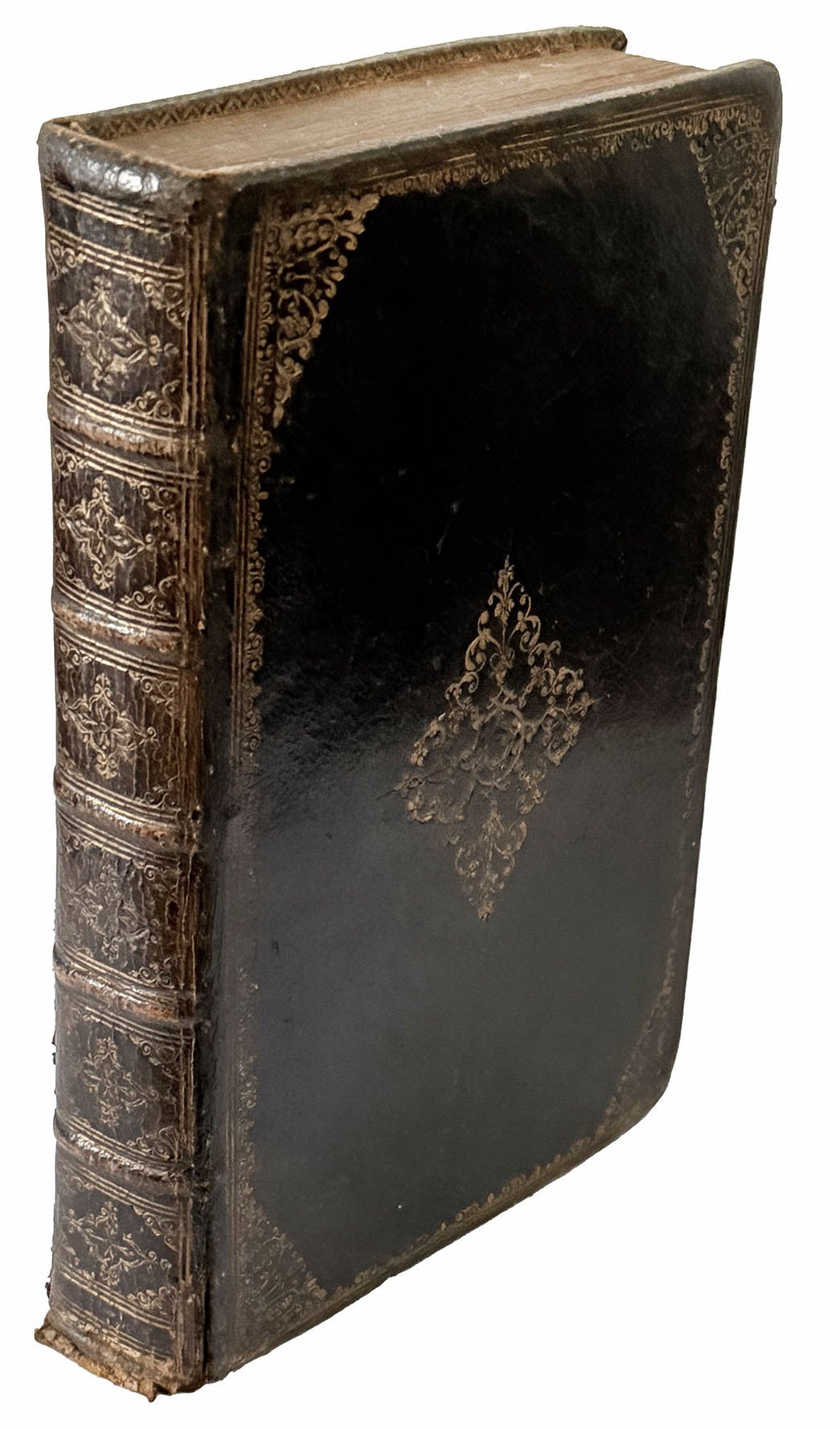 Two works in one volume (196x118 mm) nicely bound in contemporary black leather gilt, marbled endleaves, gilt edges (slightly worn, joints opened at the bottom). Ownership entry dated 1809 on the front flyleaf. Slightly uniformly browned, but a good, genuine copy.
