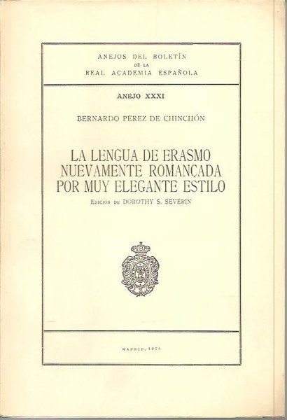 ANEJOS DEL BOLETIN DE LA REAL ACADEMIA ESPAÑOLA. ANEJO XXXI. LA LENGUA DE ERASMO NUEVAMENTE ROMANÇADA POR MUY ELEGANTE ESTILO.