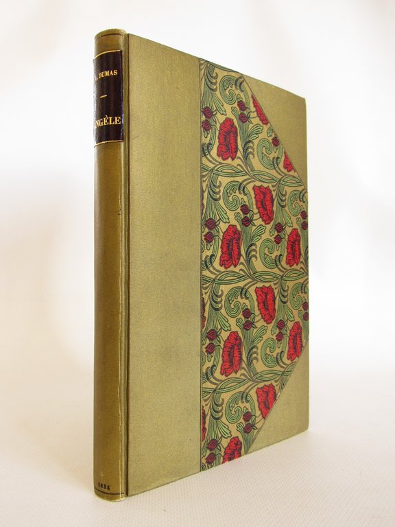 Charpentier | Paris 1834 | 14 x 22 cm | relié | [ENGLISH DESCRIPTION ON DEMAND] | Edition originale, rare, illustrée d'un très beau frontispice par Célestin Nanteuil, à l'eau-forte. Catalogue de Charpentier in fine de 4 pages. Reliure en demi percaline bronze doré à coins signée U. Zaugg ca 1880. Dos lisse. Pièce de titre de chagrin noir glacé. Papier aux coquelicots sur fond or. Tête dorée. Reliure réalisée sur brochure non rognée. Couvertures jonquilles conservées. Brunissures éparses. Traces de frottement en coiffes. Ex-libris Joseph Dumas dessiné et gravé par Henry André (1922) représentant un chateau en ruine sur un promontoire au sein d'un retable gothique. Joseph Dumas : résistant, député de la Seine et grand collectionneur d'ouvrages romantiques. Bel exemplaire joliment relié. La pièce narre les sombres machinations d'un jeune arriviste qui a mis enceinte Angèle par calcul politique. La pièce réfère surtout à la révolution de juillet 1830.