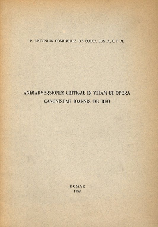 Animadversiones criticae in vitam et opera canonistae Ioannis de Deo.
