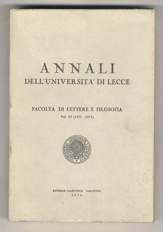 ANNALI dell'Università di Lecce. Facoltà di lettere e filosofia. Vol. VI (1971-1973).