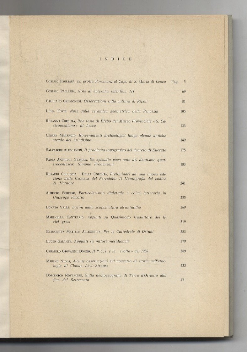 Galatina, Editrice Salentina, 1974, in-8, brossura editoriale, pp. 507, (3). Con tavole f.t. in fine.