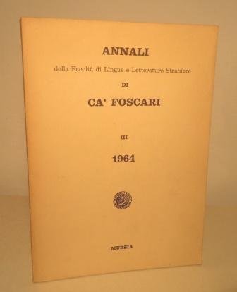 ANNALI DELLA FACOLTA' DI LINGUE E LETTERATURE STRANIERE DI CA' FOSCARI - III 1964