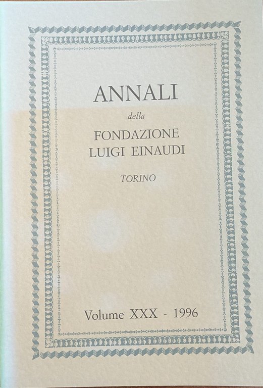 Annali della Fondazione Luigi Einaudi Volume XXX, Nis Fondazione Luigi Einaudi, 1996In-8 (Cm 24x16,7), pp. 632, brossura edit. Bruniture ai piatti, interno OTTIMO