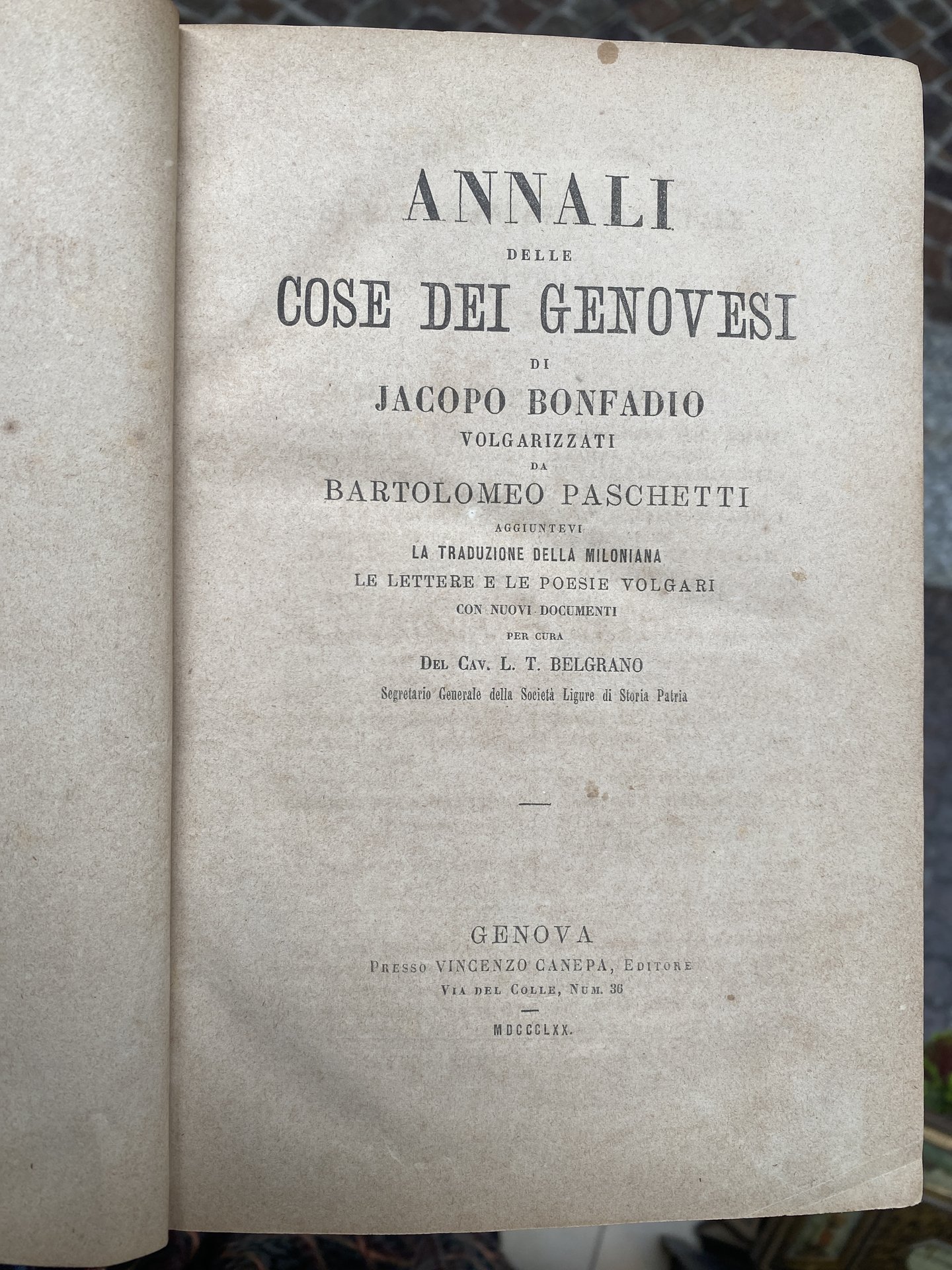 Annali delle cose dei Genovesi di Jacopo Bonfadio volgarizzati da Bartolomeo Paschetti