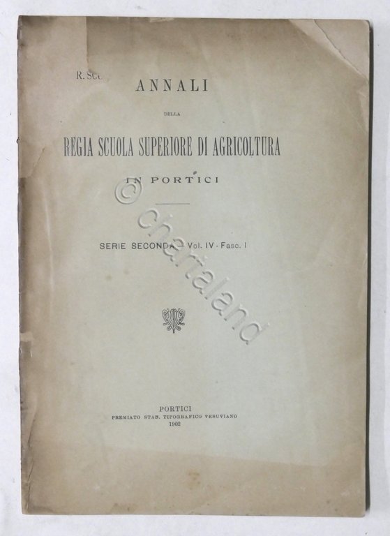 Annali Regia Scuola Superiore di Agricoltura in Portici - Serie sconda Vol. IV Fasc. I - 1902 L. Savastano - Quistione arborea italiana Pag. 198 Copertina morbida - Testo in italiano. Buone condizioni generali. Mancanze alla copertina e al dorso. Alcune pagine con piccoli strappi.