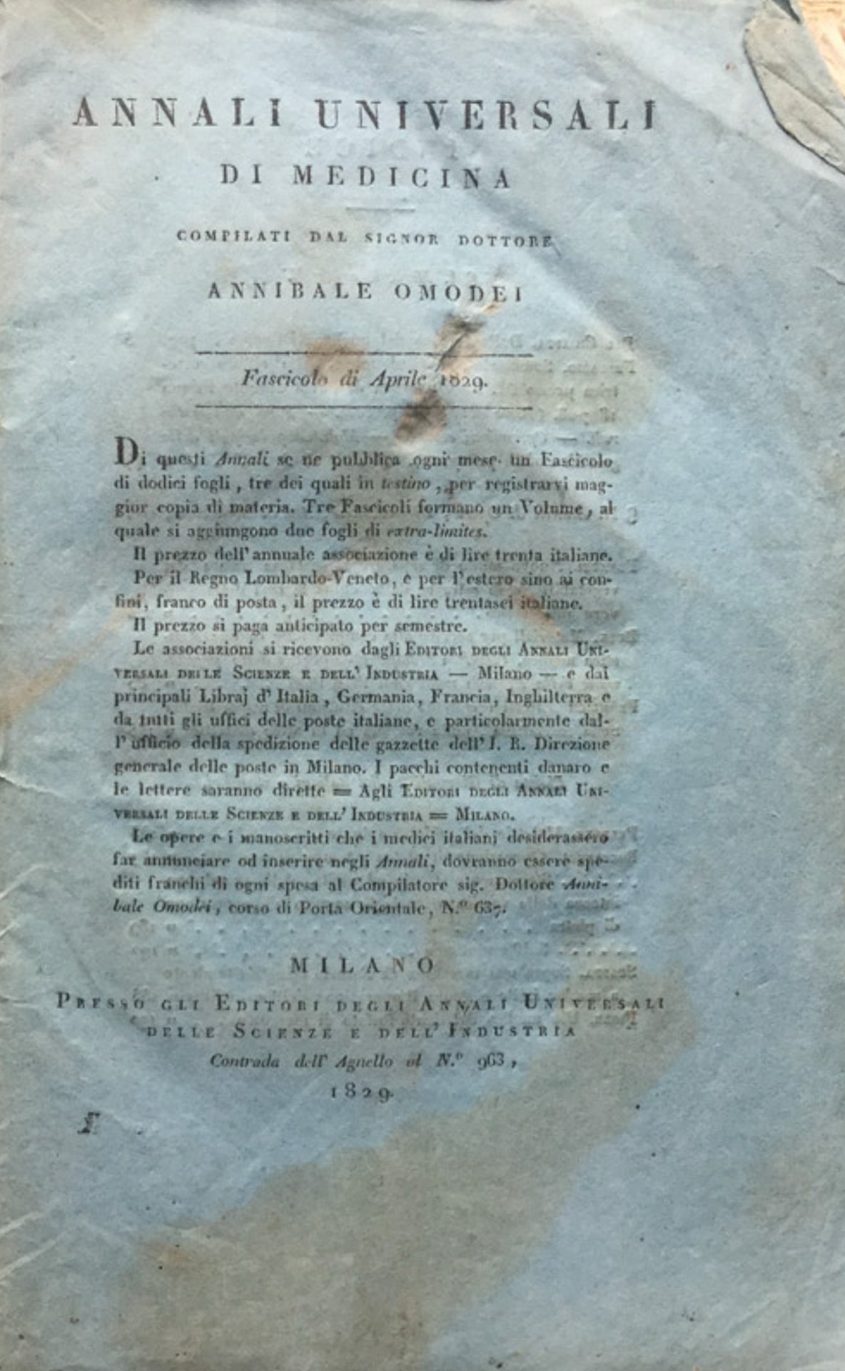 Annali Universali di Medicina. 1829. vol. LI. fasc. 148 aprile