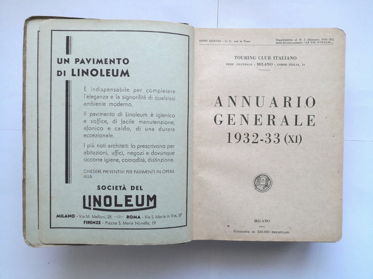 ANNUARIO GENERALE 1932 33 Touring Club Italiano Libro