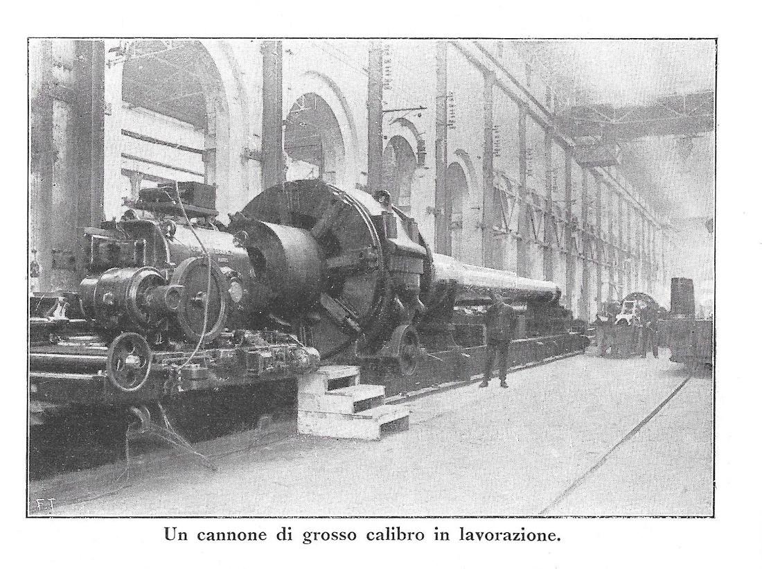 Ansaldo : Automobili blindate / cannone di grosso calibro in lavorazione (Genova). Stampa 1916
