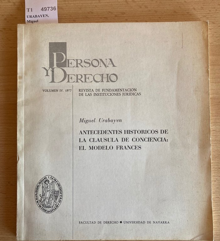 ANTECEDENTES HISTORICOS DE LA CLAUSULA DE CONCIENCIA: EL MODELO FRANCES. PERSONA Y DERECHO. REVISTA DE FUNDAMENTACION DE LAS INSTITUCIONES JURIDICAS. (VOL. IV.1977)