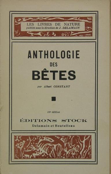 Editions Stock, Paris, 1947. Petit In/8 broché, couverture illustrée de deux bandeaux, 338 pages. Les plus grandes signatures pour ce recueil de textes : Buffon pour les orang-outangs, Audubon, pour le dindon sauvage, Léon Lafage, Colette, F. Mistral, Jules Supervielle, Gaston Chérau pour l’hermine et la bécasse.