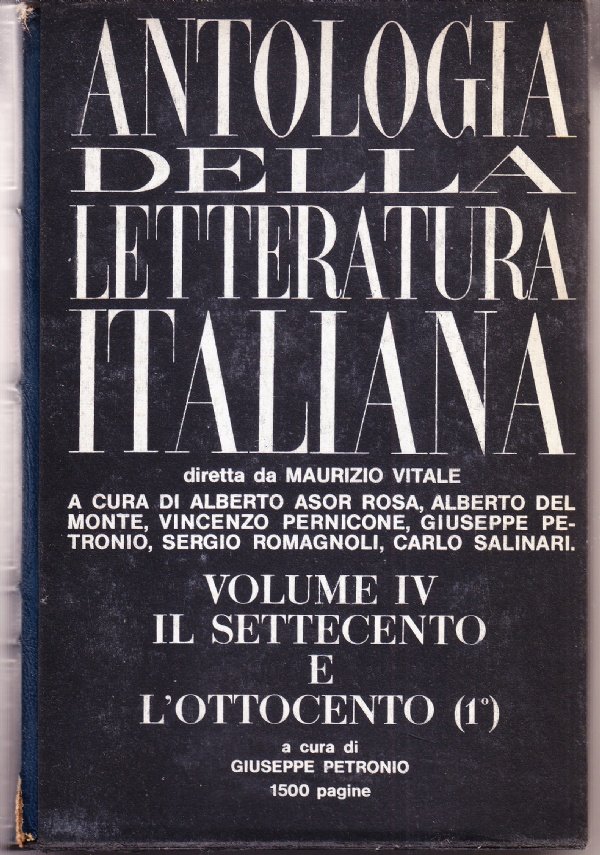 ANTOLOGIA DELLA LETTERATURA ITALIANA VOLUME IV. IL SETTECENTO E L'OTTOCENTO (1°)