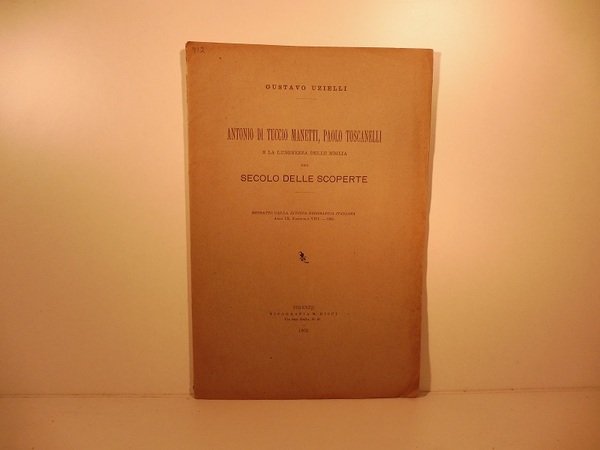 Antonio Di Tuccio Manetti, Paolo Toscanelli e la lunghezza delle miglia nel secolo delle scoperte. Estratto dalla Rivista geografica italiana
