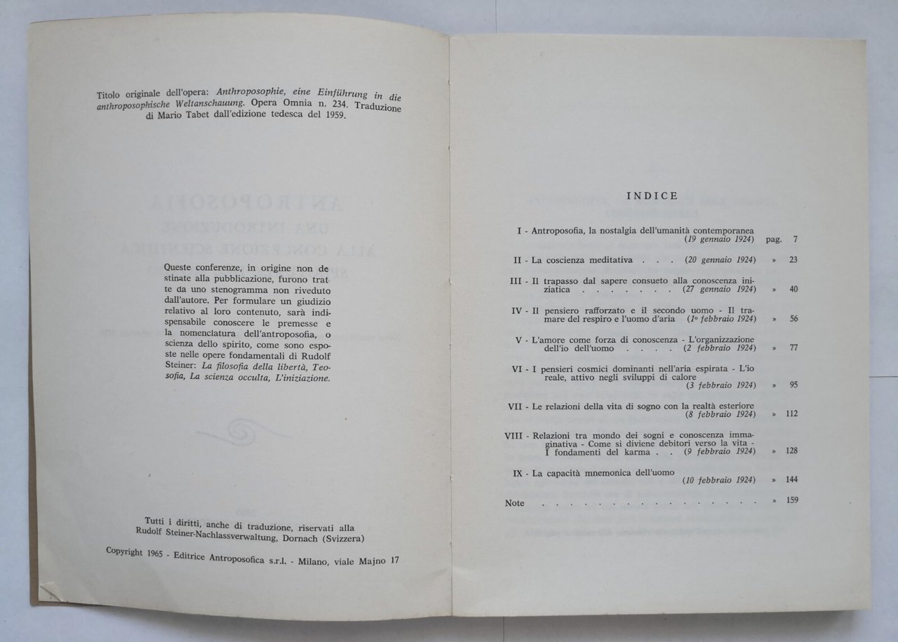 ANTROPOSOFIA di Rudolf Steiner 1965 Editrice Antroposofica libro concezione mond