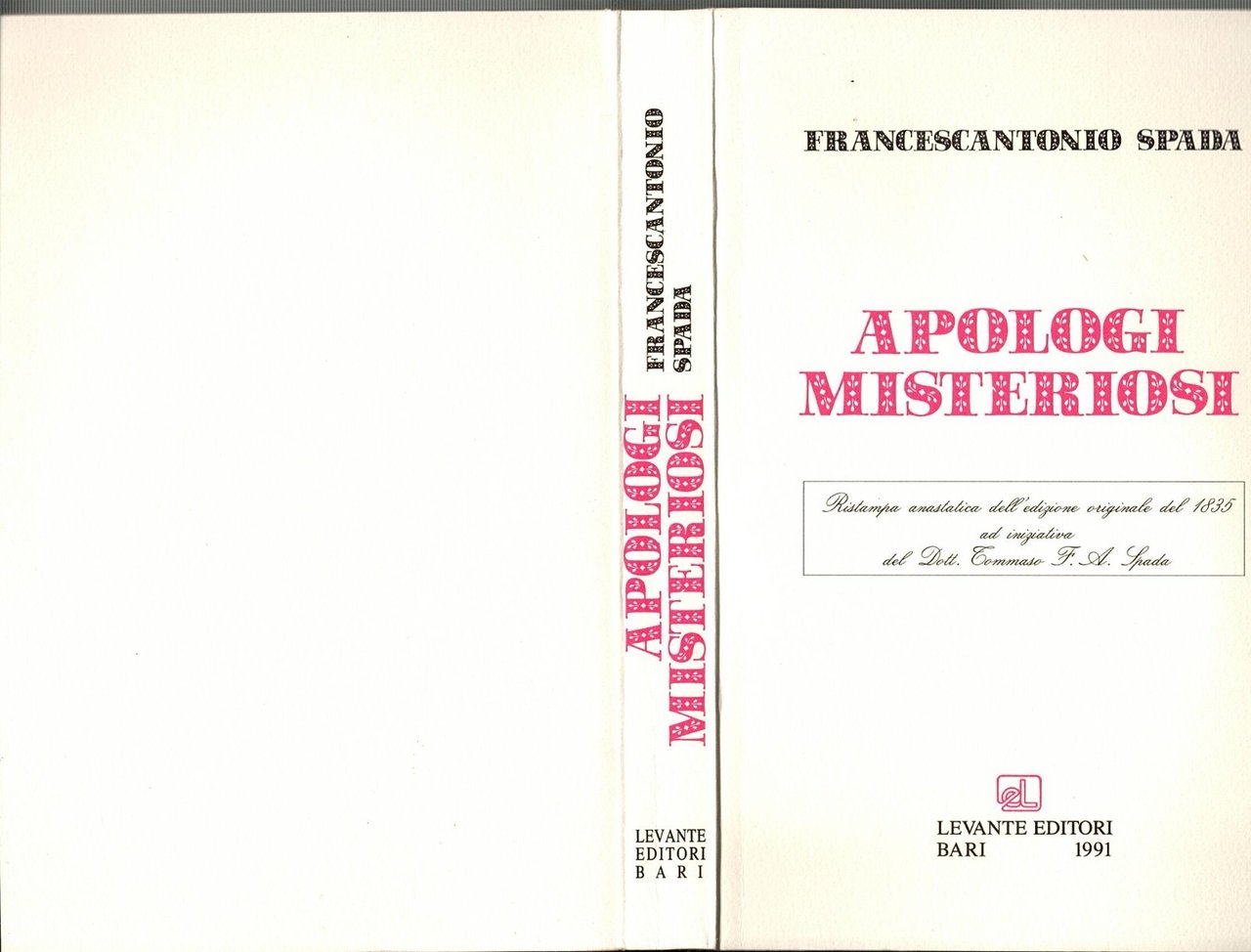 APOLOGI MISTERIOSI di Francescantonio Spada 1991 Levante Ristampa Libro