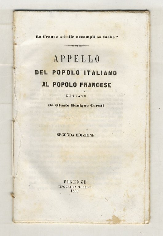 Appello del popolo italiano al popolo francese, dettato da Giusto Benigno Ceruti. Seconda edizione.