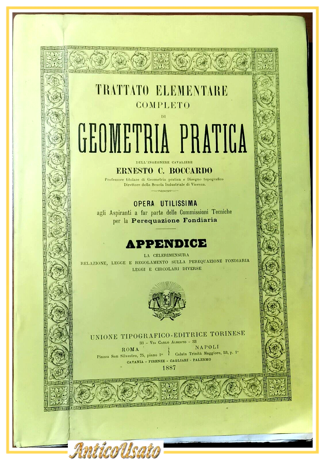 UTET editore 1887, volume finale dell'opera Trattato Elementare Completo di Geometria Pratica.