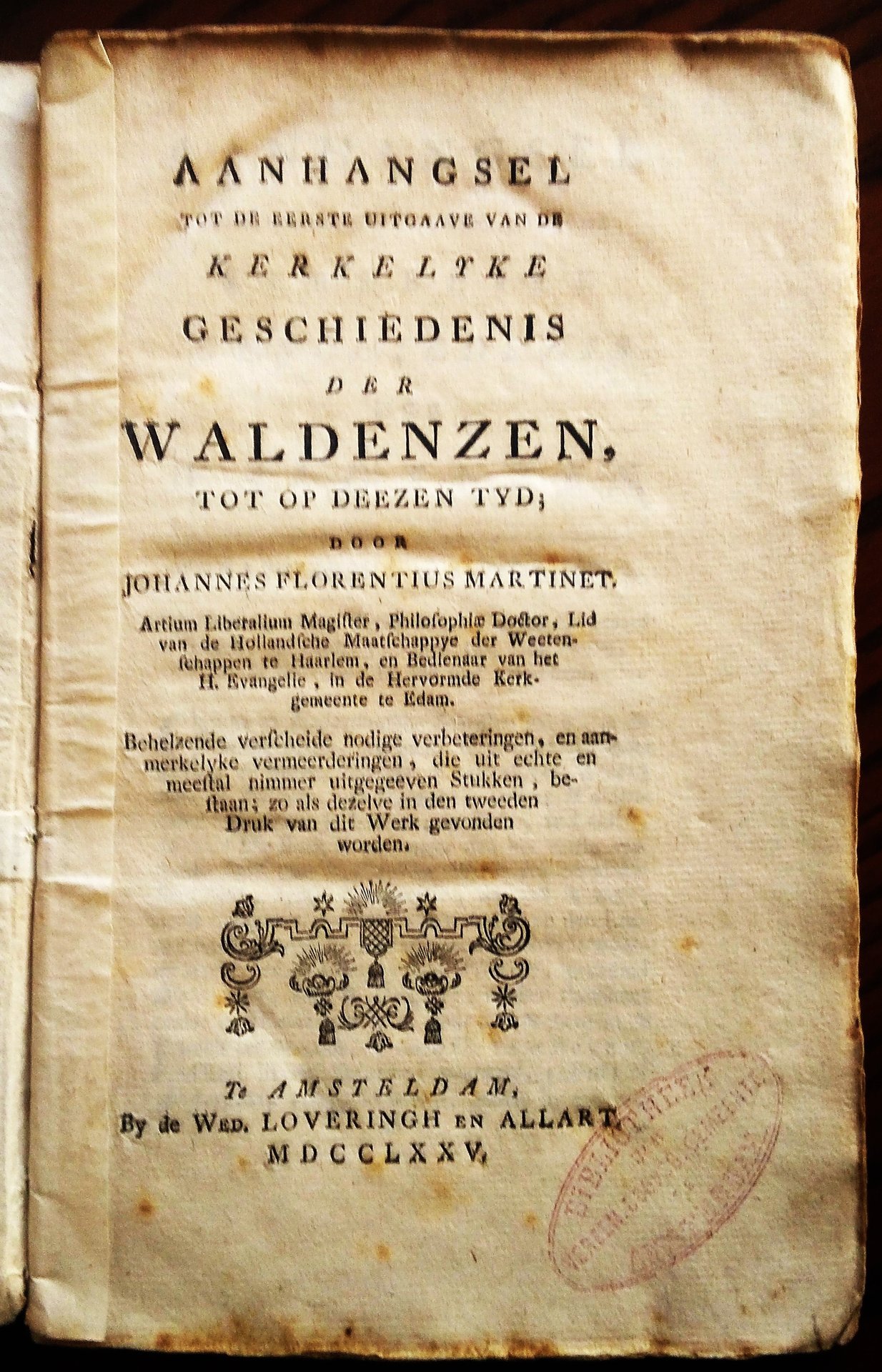 (Appendice alla prima - edizione della storia ecclesiastica dei Valdesi) - Aanhangsel tot de eerste uitgaave van de Kerkelyke geschiedenis der Waldenzen...