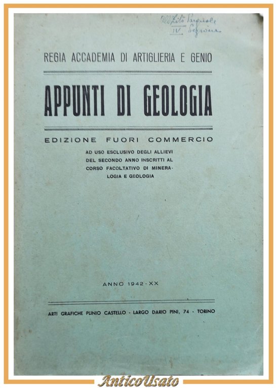 APPUNTI DI GEOLOGIA 1942 regia accademia di artiglieria e genio Libro allievi
