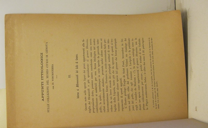 Appunti ittiologici sulle collezioni del Museo Civico di Genova. III. Intorno ai Blennioidi del Golfo di Genova