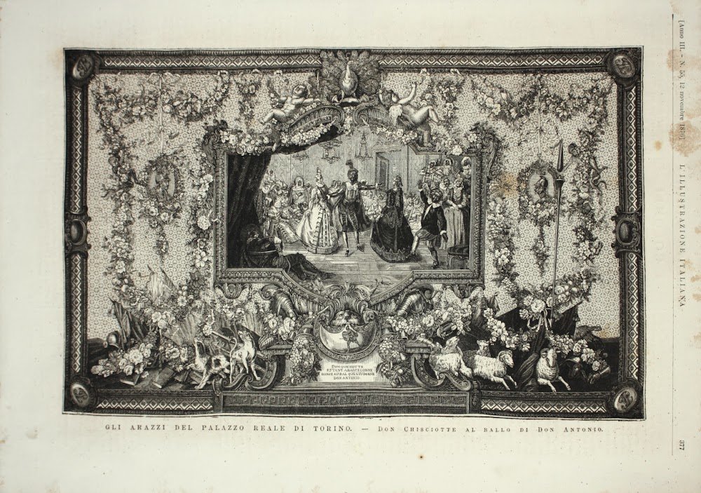 Arazzi del Palazzo reale di Torino. Don Chisciotte al ballo di don Antonio. Stampa 1876