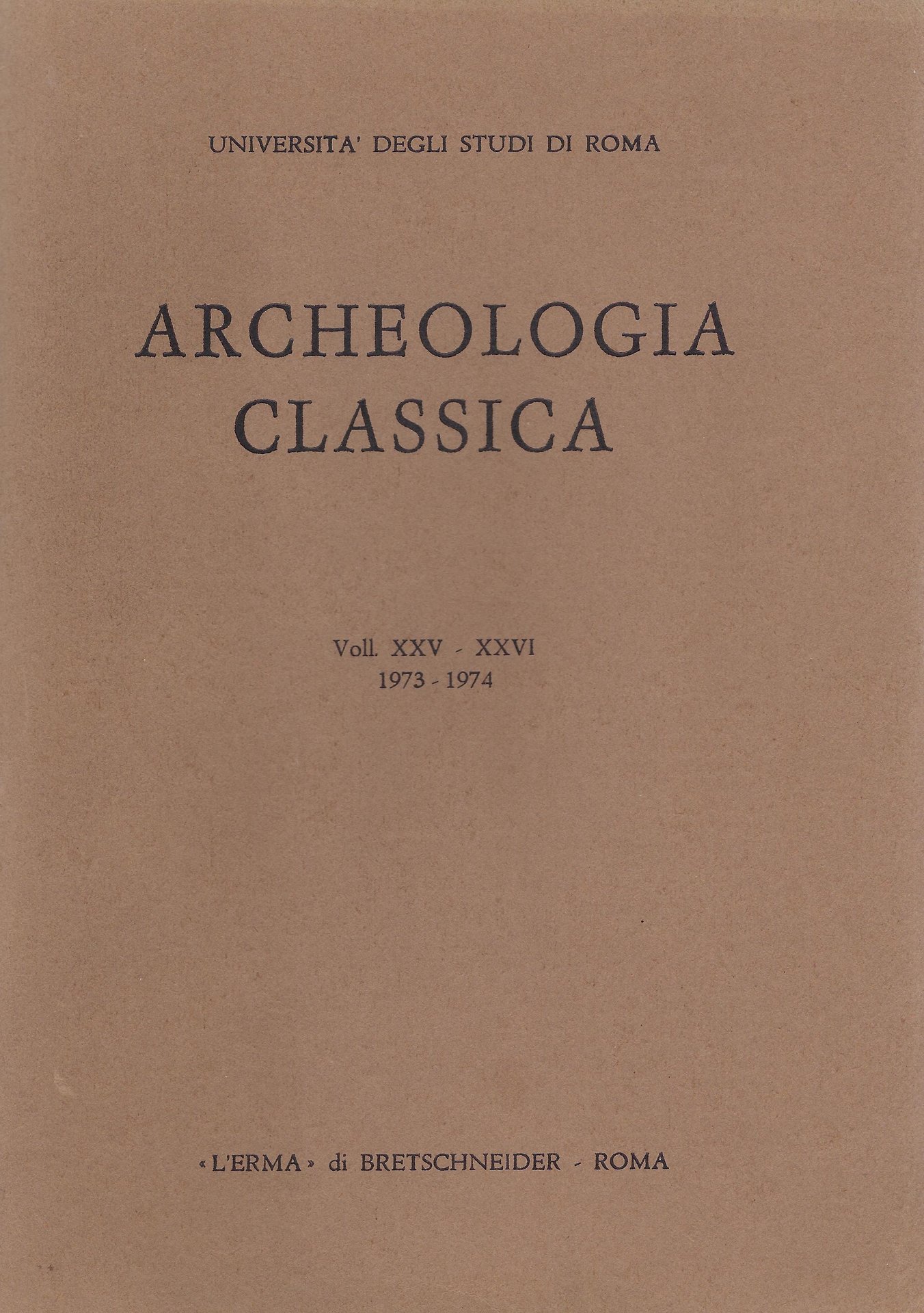 Archeologia classica, voll. XXV-XXVI, 1973-1974