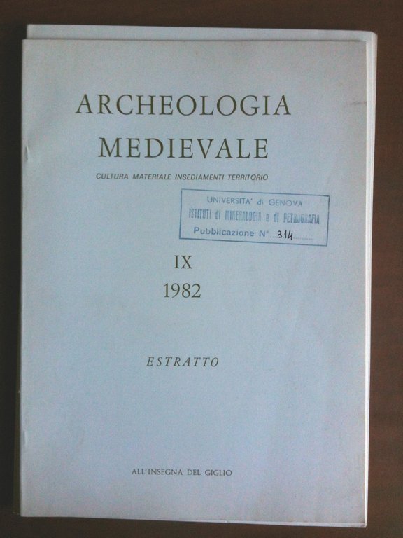 ARCHEOLOGIA MEDIEVALECultura Materiale Insediamenti TerritorioIX 1982 EstrattoAll'Insegna del giglioUniversità di genova Istituti di Mineralogia e di Petrografia Pubblicazione n^ 3148 pagine  (77 g)E3801