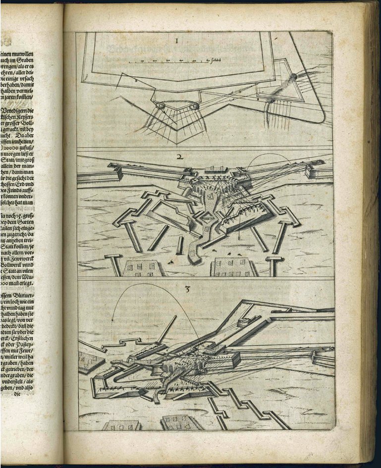 Architectura von Vestungen. Wie die zu unsern zeiten mögen erbawen werden, an Stätten Schlössern, unnd Clussen, zu Wasser, Land, Berg, unnd Thal, mit jren Bollwerken, Cavalieren, Streichen, Gräben und Leuffen, sampt deren gantzen anhang, und nutzbarkeit, auch wie die Gegenwehr zu gebrauchen, was für geschütz dahin gehörig, und wie es geordnet, unnd gebraucht werden soll, alles auss grund un deren Fundamenten.