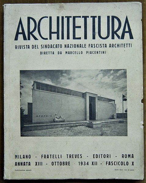 ARCHITETTURA. OTTOBRE 1934. RIVISTA DEL SINDACATO NAZIONALE FASCISTA ARCHITETTI.