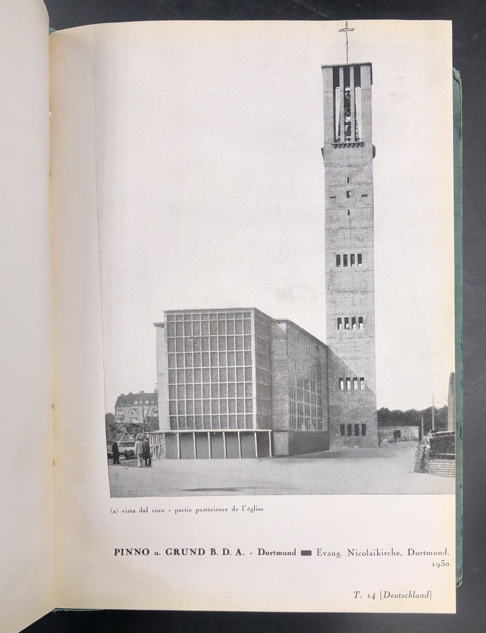 In-8° (cm. 24,2x17,3), pp. XIV + 40 TAVOLE (testo italiano/francese) realizzazioni di chiese strettamente legate all'architettura razionale, costruite negli Anni Venti per lo più in Germania e Olanda su progetti di GOCAR, O. BARTNING, HOEGER, BAKKER, E. REITSMA e altri. Cartone verdazzurro con grafica razionalista (gran titolo in oro e nero) al piatto ant., strisce nere editoriali a dorso e piatto post. Tracce di gora scoloriscono il dorso e si avvertono appena ai bordi interni, Una tavola con insignificanti abrasioni da aderenza. SERVETTAZ, scultore formato a Milano e a Torino alla scuola del marmo presso Cesare Ravasco e Adolfo Wildt. Intorno alla fine degli anni '20 la terracotta e la ceramica segnano la sua produzione presso la Fabbrica Mazzotti ad Albisola, poi influenzato da Arturo Martini. Non comune!