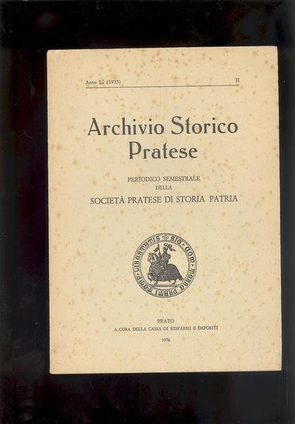 IN 8, pp.243, COPERTINA EDITORIALE CON TITOLO E LOGO DELLA SOCIETA' PRATESE DI STORIA PATRIA. UNA CARTA f.t. CON PRODUZIONE DI DOCUMENTI. IL VOLUME, E' IL SECONDO SEMESTRE, ANNO LI ( 1975 ). L'ARCHIVIO STORICO PRATESE FU FONDATO NEL 1916. DIRETTORE, DOTT. MARIO BERNOCCHI.ALCUNE FIORITURE ALLA PRIMA DI COPERTINA, ALTRIMENTI OTTIMA CONSERVAZIONE. ID 4393