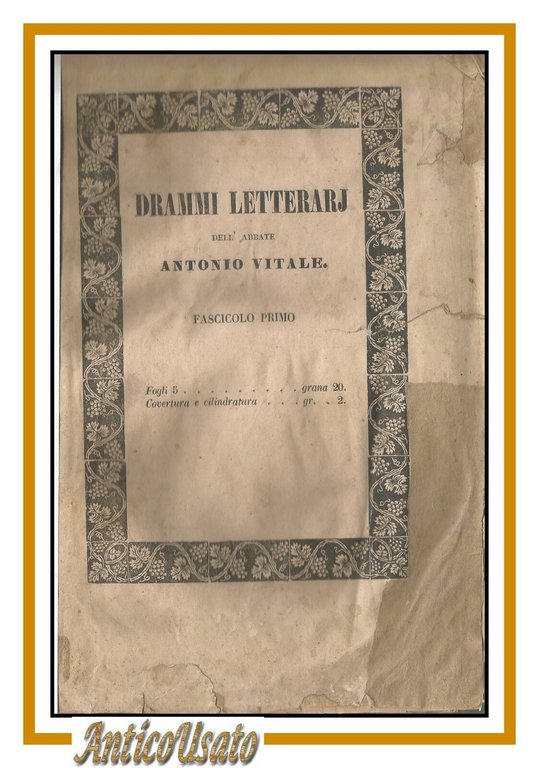 Napoli, dallo stabilimento poligrafico di C. Cataneo, 1846. volume I dei Drammi Letterari
