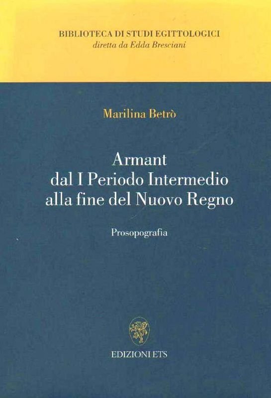 In-8°, legatura editoriale in brossura con alette, pp. 121(3). Primo volume della Biblioteca di Studi Egittoogici diretta da Edda Bresciani. Ermonti (arabo أرمنت Armant, greco Hermonthis) è una località dell'Egitto situata a circa 10 km a sud-ovest di Luxor. Esemplare allo stato di nuovo.