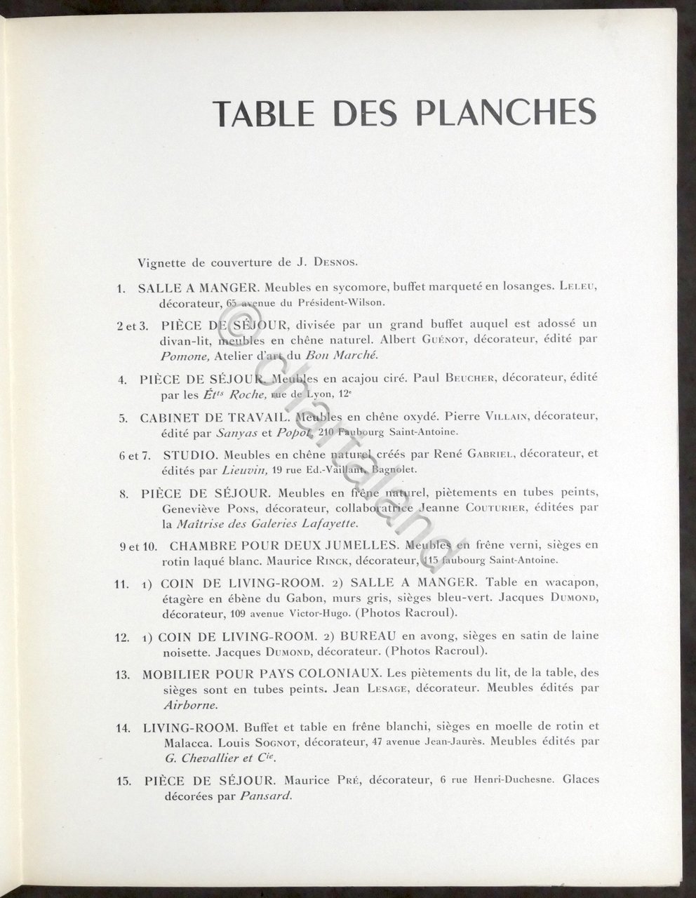 Arredamento - Ensembles Mobiliers - Vol. 13 - 1953 Cofanetto contenente un fascicolo di 5 pagine (introduzione e indice) + 48 tavole sciolte. Testo in francese. Indice delle tavole come da foto d'inserzione. Condizioni molto buone.