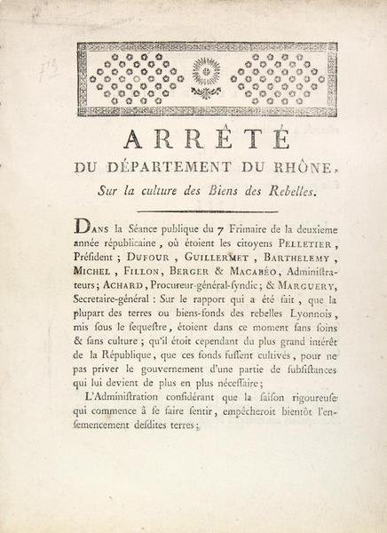 Arrêté du département du Rhône, sur la culture des biens des Rebelles