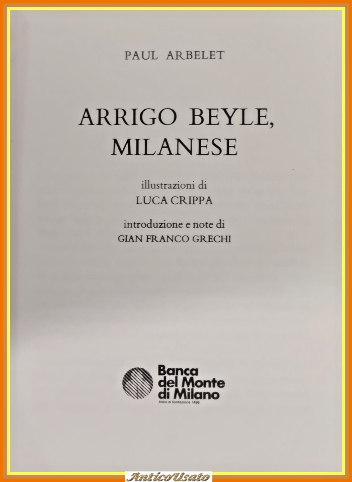 ARRIGO BEYLE MILANESE di Paul Arbelet 1983 Banca del Monte di Milano Libro Arte