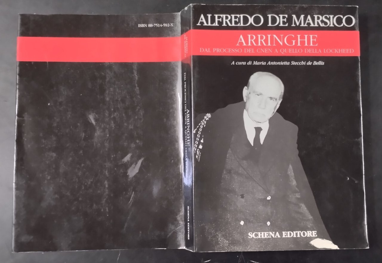 ARRINGHE dal processo del CNEN a quello della LOCKHEED di Alfredo De Marsico. Editore Schena, 1994. 323 pagine, numerose fotografie in bianco e nero fuori testo. Copertina editoriale in brossura. Stato di conservazione: molto buono (pagine normalmente ingiallite) Libro usato saggistica diritto giurisprudenza avvocati