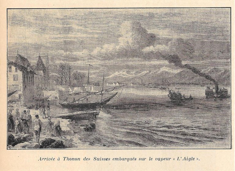 Arrivée à Thonon des Suisses embarquées sur L'Aigle. Stampa 1932