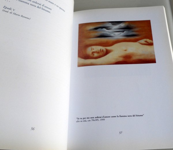 Soggetti: Arte, Mostre, Esposizioni, Cataloghi, Exhibition catalogue, Pittura, Fabio Mauri, Richard Gordman, Titina Maselli, Lino Frongia, Esther Pizarro, Cloti Ricciardi, Ruggero Savinio, Isabel Tristan, Monica Ferrando, Cultura, Orazio, Poesia, Tempeste, Blandusian spring, Odi, Opere, Versi, Classicità, Collezionismo
