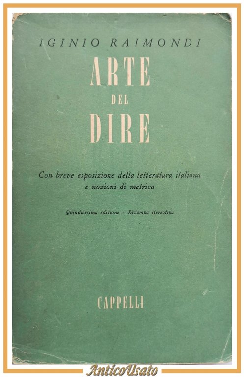 ARTE DEL DIRE di Iginio Raimondi 1953 Cappelli libro scolastico nozioni temi